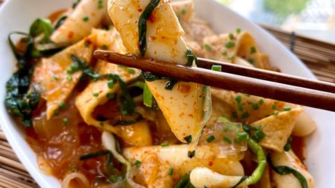 Dangmyeon noodles and tteokbokki come together for this delicious meal that’s ready in no more than 15 minutes! Dangmyeon noodles + tteokbokki = dangmyeon bokki (당면 볶이) Tteokbokki with no gochujang? Yes! Unlike the other tteokbokki recipes on my page, this one uses NO gochujang. This is actually a popular trend in Korea, so I knew I needed to try it. I was worried about the tteokbokki being flavorless, but I was wrong! All of the ingredients came together really liked it. So, give it a try and let me know what you think. Noodles Dangmyeon (당면) noodles, or potato starch noodles, were used for this recipe. I love the texture of these noodles! It’s soft, chewy and light. I highly recommend it, but it is difficult to find outside of a Korean market. Otherwise, … Continue reading Glass Noodle Tteokbokki